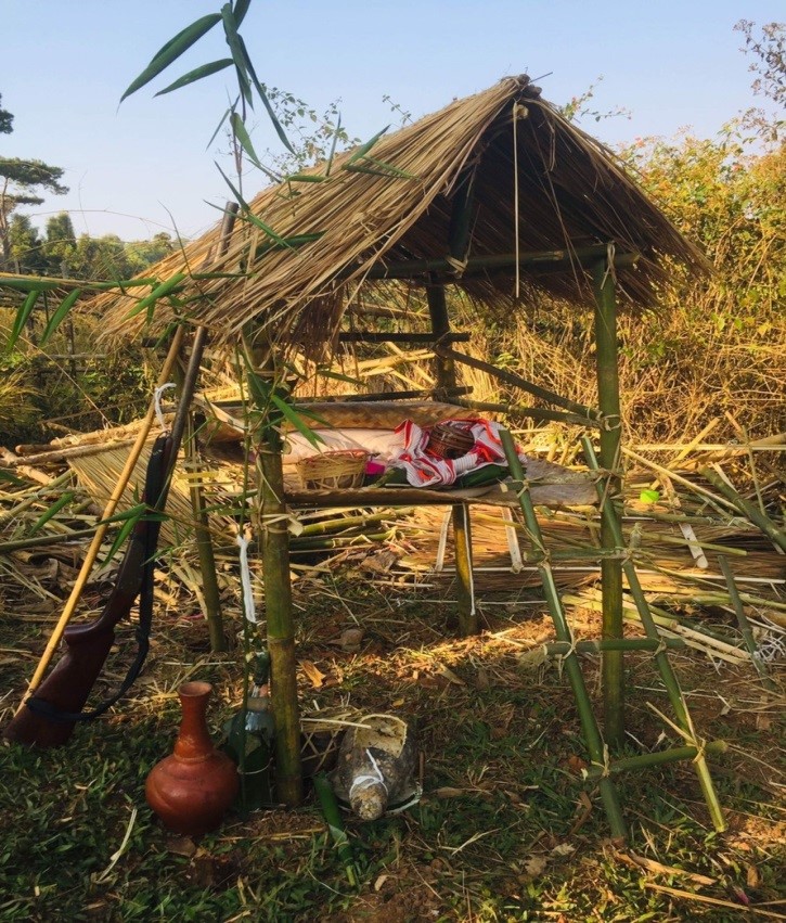 โดยมีตูบผีสำหรับทำพิธีเลี้ยงผีละมาง ซึ่งมีเครื่องพิธีอันประกอบไปด้วย